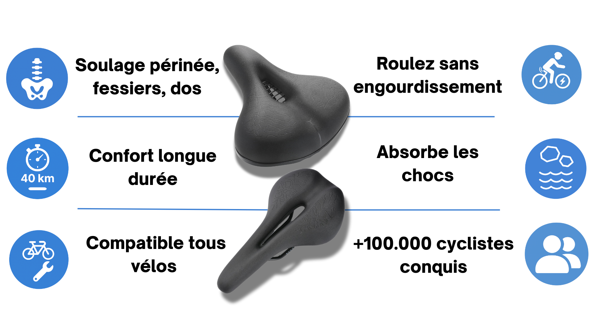 Chez 8 cyclistes sur 10, une selle inadaptée est la cause d’engourdissements ou de douleurs au dos et aux fessiers.