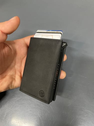 Même si certains clients avaient des réserves au départ, ils ont finalement trouvé le Smart Wallet compact et pratique. Il se glisse confortablement dans une poche de pantalon, à l’avant comme à l’arrière, tout en offrant suffisamment de place pour toutes les cartes importantes et l’argent.